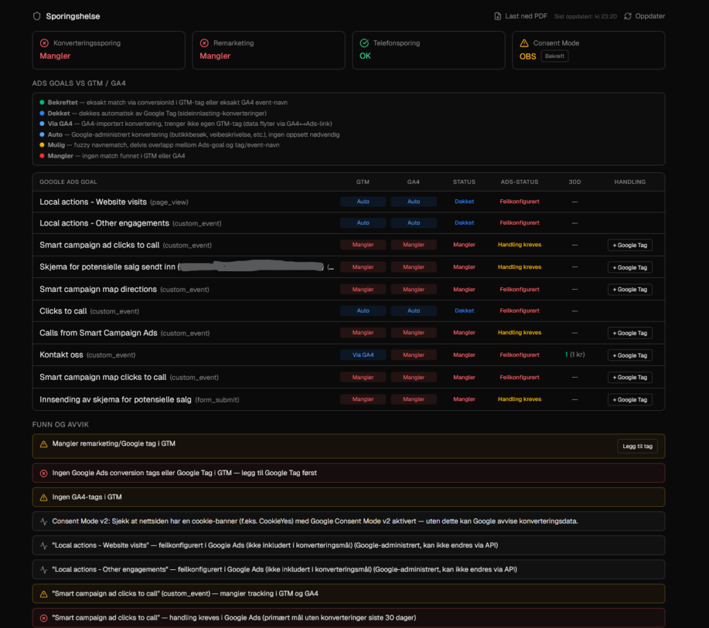 Vi i Digital Sør jobber med Google Ads for bedrifter i Kristiansand og på Sørlandet. Sporing er det første vi sjekker hos nye kunder. Og det er nesten alltid der vi finner de største problemene.